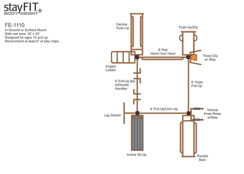 StayFIT Systems outdoor/indoor bodyweight fitness equipment offers a wide selection of standard fitness designs. They can be installed outdoors or indoors in almost any setting. StayFIT equipment is perfect for any application; schools and universities, fitness centers and athletic clubs, apartments, parks, corporate centers, residential settings and much more. If a standard StayFIT design doesn’t fit your needs we can quickly design a custom set that will.